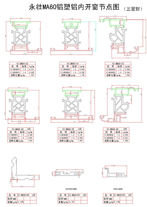 YZ-MA60鋁塑鋁內開窗節點圖(二)